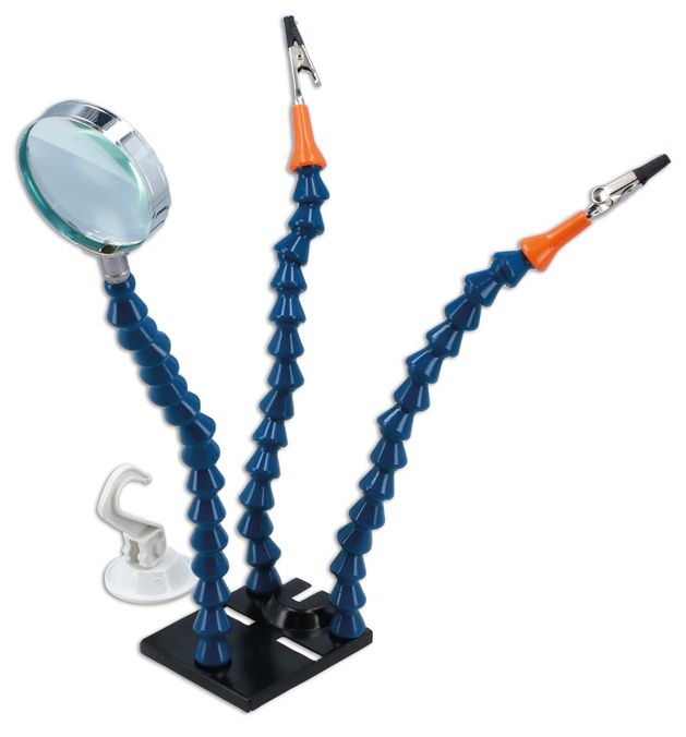 - Forrasztó állvány nagyítóval, alkatrészek és vezetékek forrasztáshoz való tartására alkalmas.